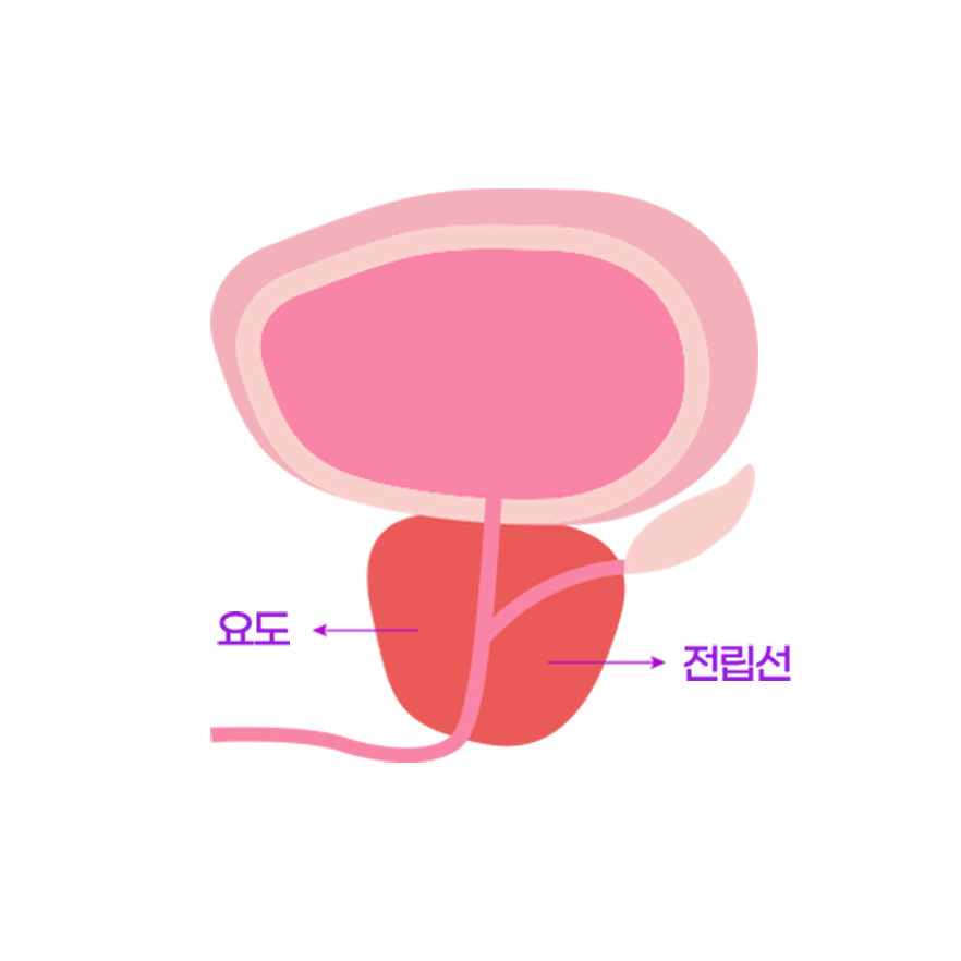 전립선이 비대해지며 소변길을 압박합니다.
