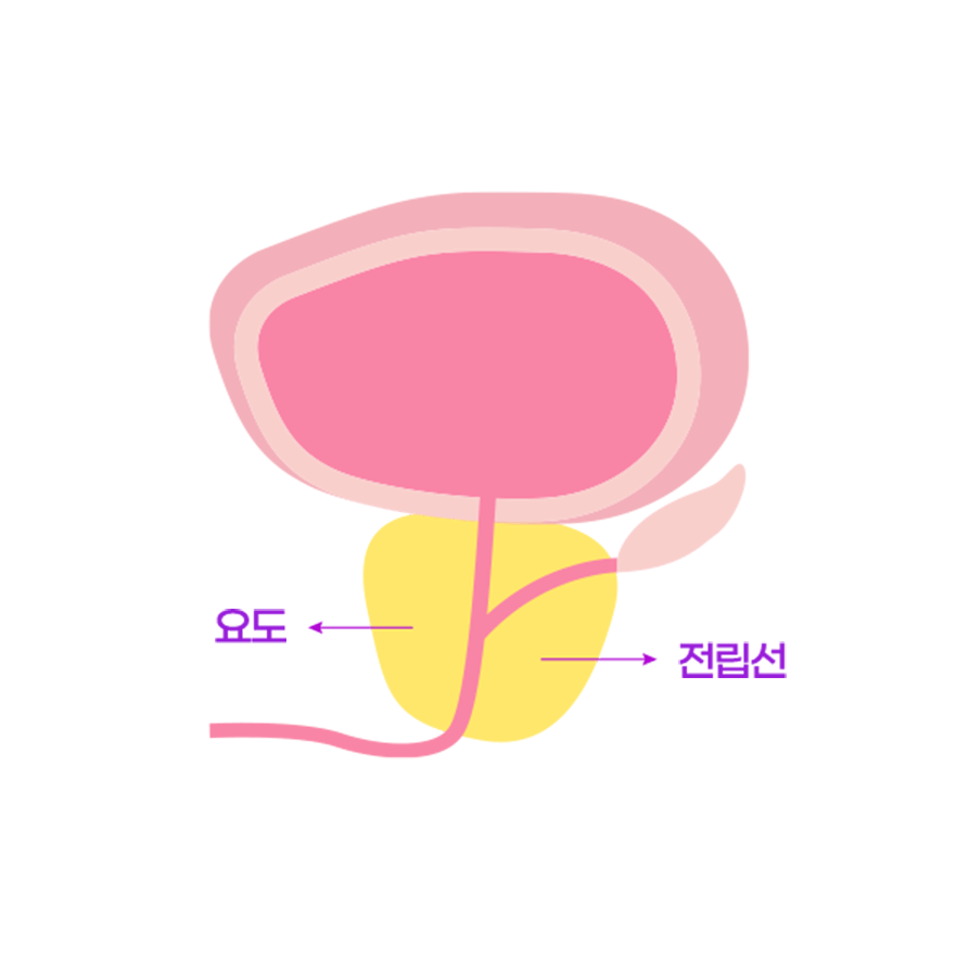전립선이 비대해지며 소변길을 압박합니다.